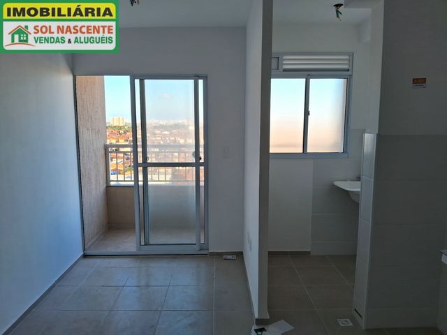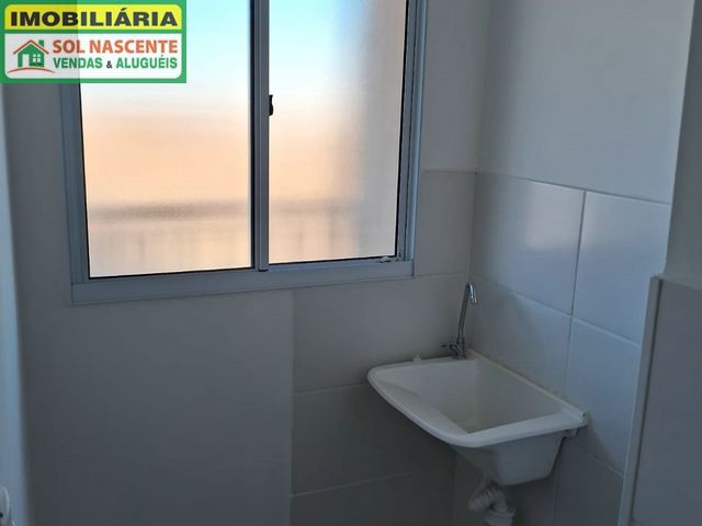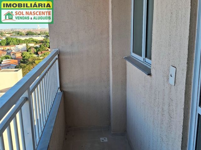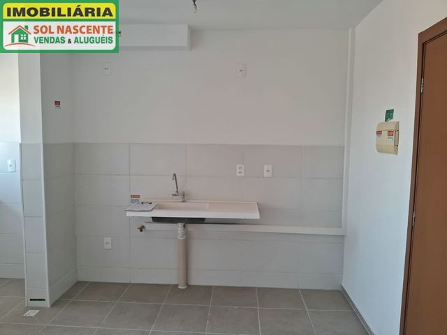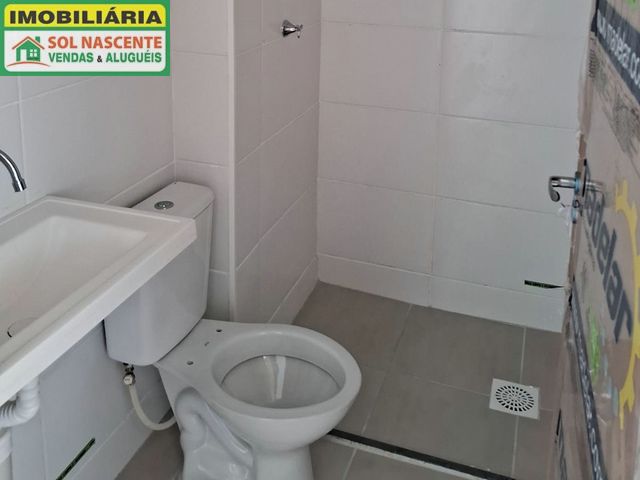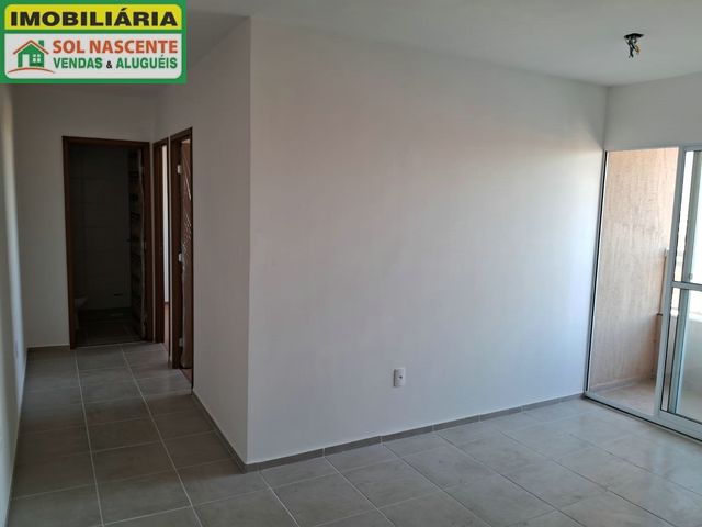 Apartamento com 2 quartos, banheiro social, sala de estar, varanda, cozinha com área de serviço e 1 vaga.
