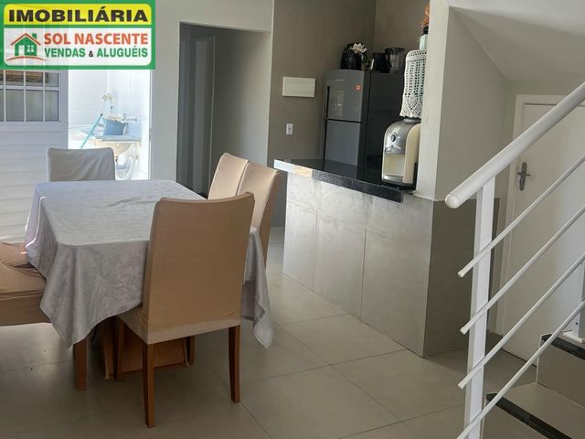Casa duplex com 3 quartos (sendo 2 suítes), sala ampla e arejada, cozinha americana integrada à sala, área de serviço e vaga para 2 carros.