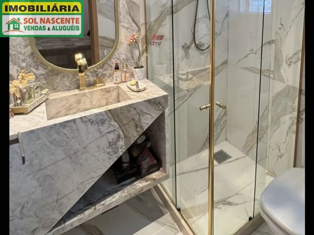 Apartamento com 76m² de área privativa, 3 quartos, sendo 2 suítes (1 reversível), sala ampla com 2 ambientes, varanda, cozinha convencional com armários, área de serviço e 2 vagas de garagem.