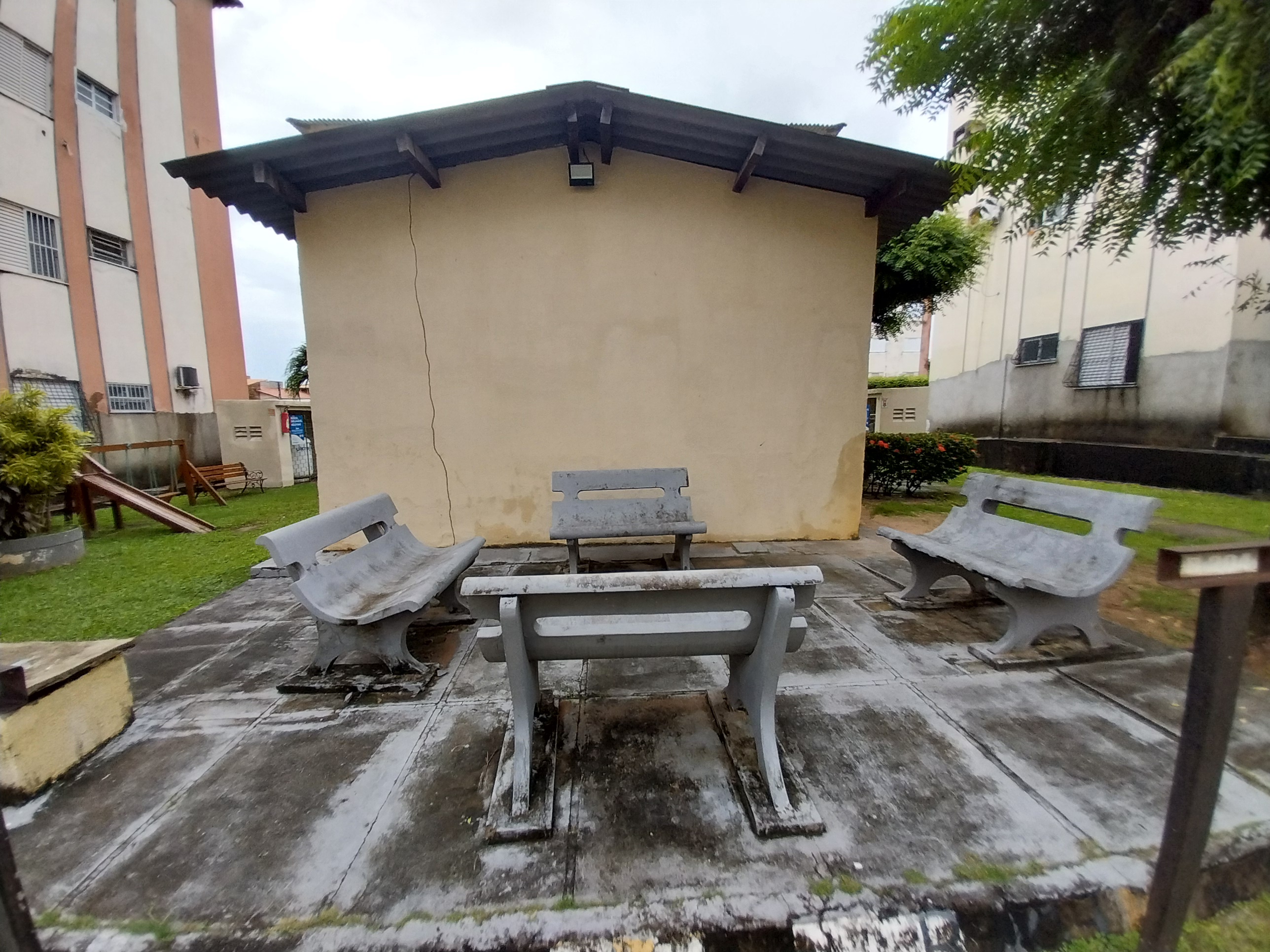 Com 50m², 2 quartos, sala de estar, cozinha, área de serviço, banheiro social e uma vaga de garagem, condomínio conta com portão automático e interfone.