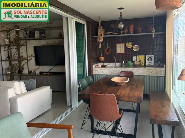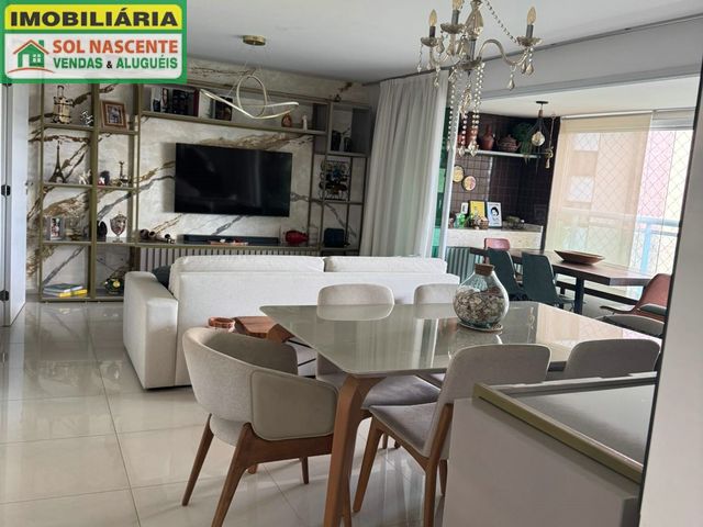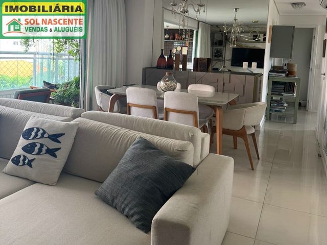 Apartamento com 136m² muito bem distribuídos: dispõe de 3 suítes, lavabo, sala ampla com 2 ambientes, varanda, cozinha com armários e 3 vagas de garagem.