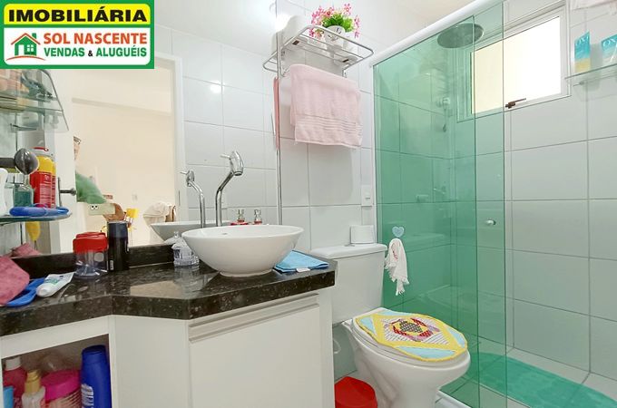 O imóvel dispõem de 3 quartos sendo 2 suítes com armários a master com varanda, sala de estar e jantar, cozinha americana com armários, banheiro social, área de serviço com armários, deck com churrasqueira, chuveirão, espaço para convivência e 2 vagas de garagem. Piso porcelanato, ar condicionado e os moveis da casa vão fica com exceção de alguns itens.