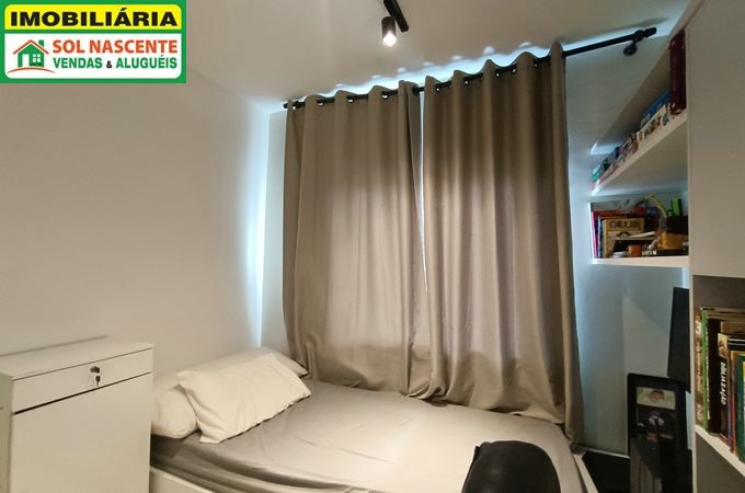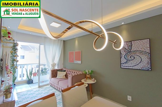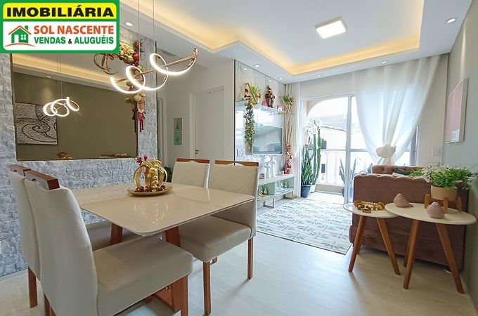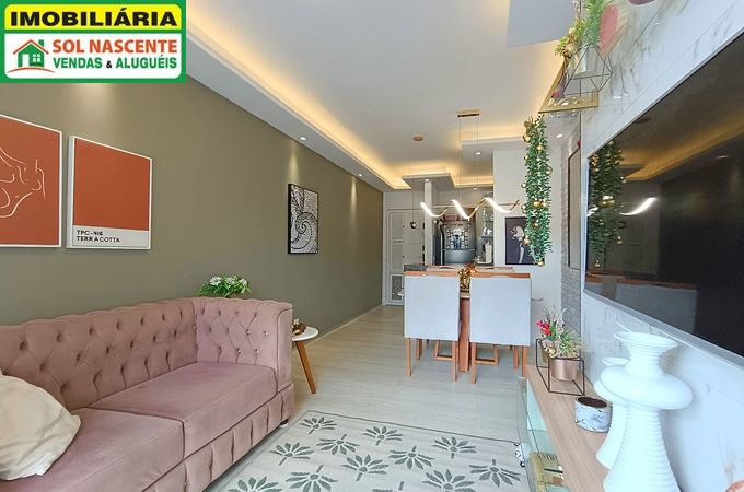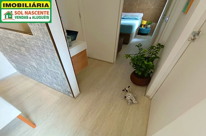 Apartamento com 50,39m², 2 quartos sendo 1 suíte, sala 2 ambientes, piso em porcelanato, varanda, cozinha americana planejada, área de serviço e banheiro social. Apartamento decorado e recém reformado.