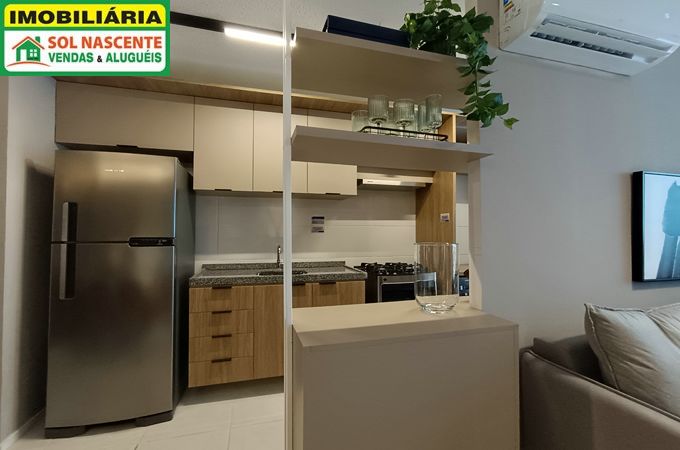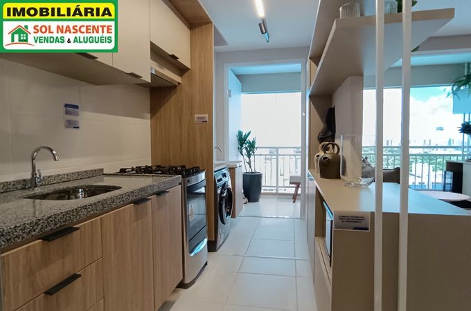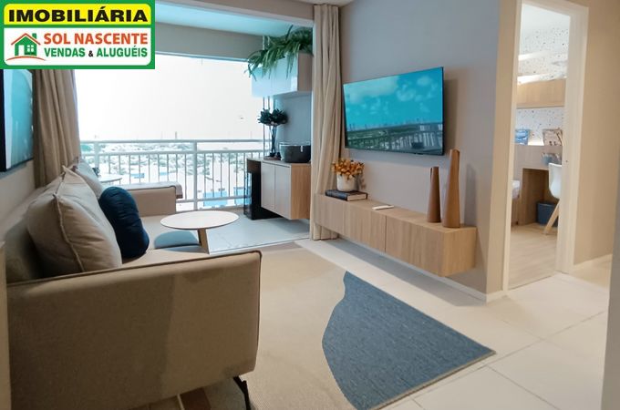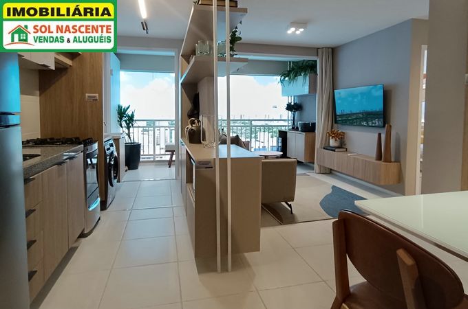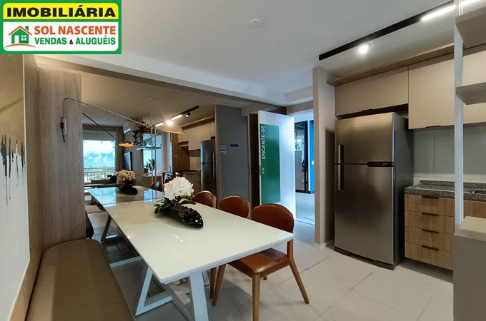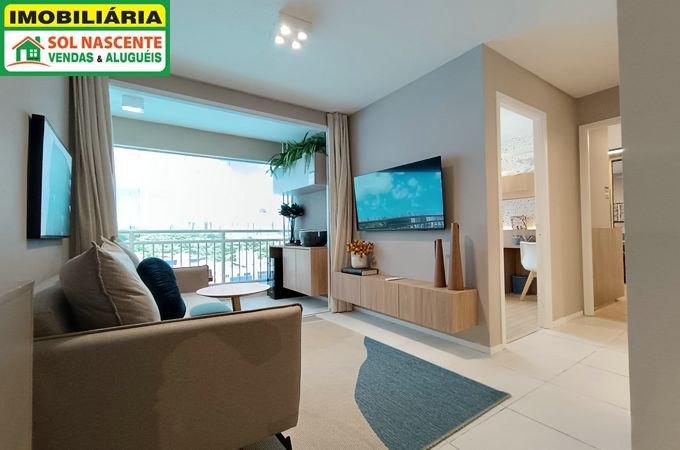 Apartamento com 2 quartos sendo uma suíte, sala para 2 ambientes, varanda gourmet, cozinha americana com área de serviço e 1 vaga de garagem.