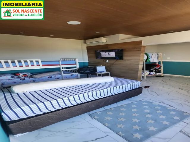 Imóvel com área total construída de 300m², 08 quartos amplos, sendo 06 suítes, sala com 02 ambientes, 2 banheiros sociais, jacuzzi com cromoterapia, sauna a vapor, boate privativa, piscina adulto e infantil, churrasqueira e forno a lenha, deck espaçoso e área externa arborizada, canil e 06 vagas de garagem, moradia confortável com lazer completo.