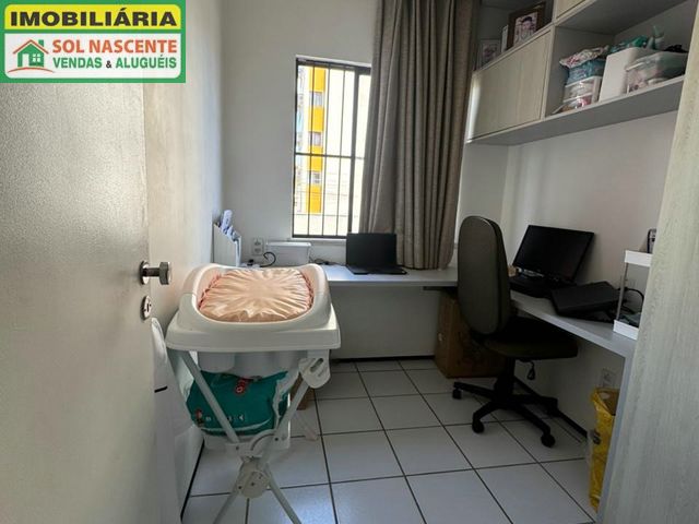 Imóvel com 63,68m², 3 quartos, sendo 1 suíte com armários planejados, sala em L, cozinha americana com armários, área de serviço, banheiro social, sala e vaga para 2 carros.