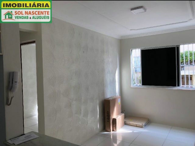 Apartamento com 48m² bem distribuídos, com 2 quartos, banheiro social, sala com 2 ambientes, cozinha americana com armários, área de serviço e 1 vaga de garagem.