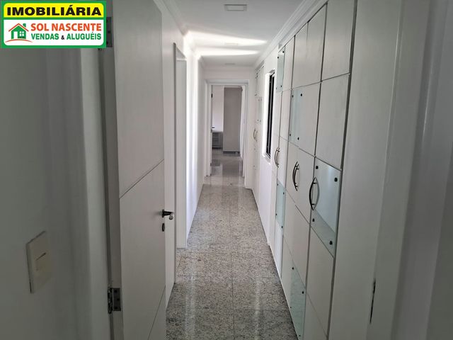 O imóvel conta com 3 quartos, sendo 3 suítes com armários planejados, além de 3 closets, proporcionando praticidade e organização. A área social é composta por uma elegante sala de estar, sala de jantar e sala de TV, criando ambientes distintos e aconchegantes para convivência e recepção de convidados. Dispõe ainda de lavabo, agregando comodidade ao dia a dia.